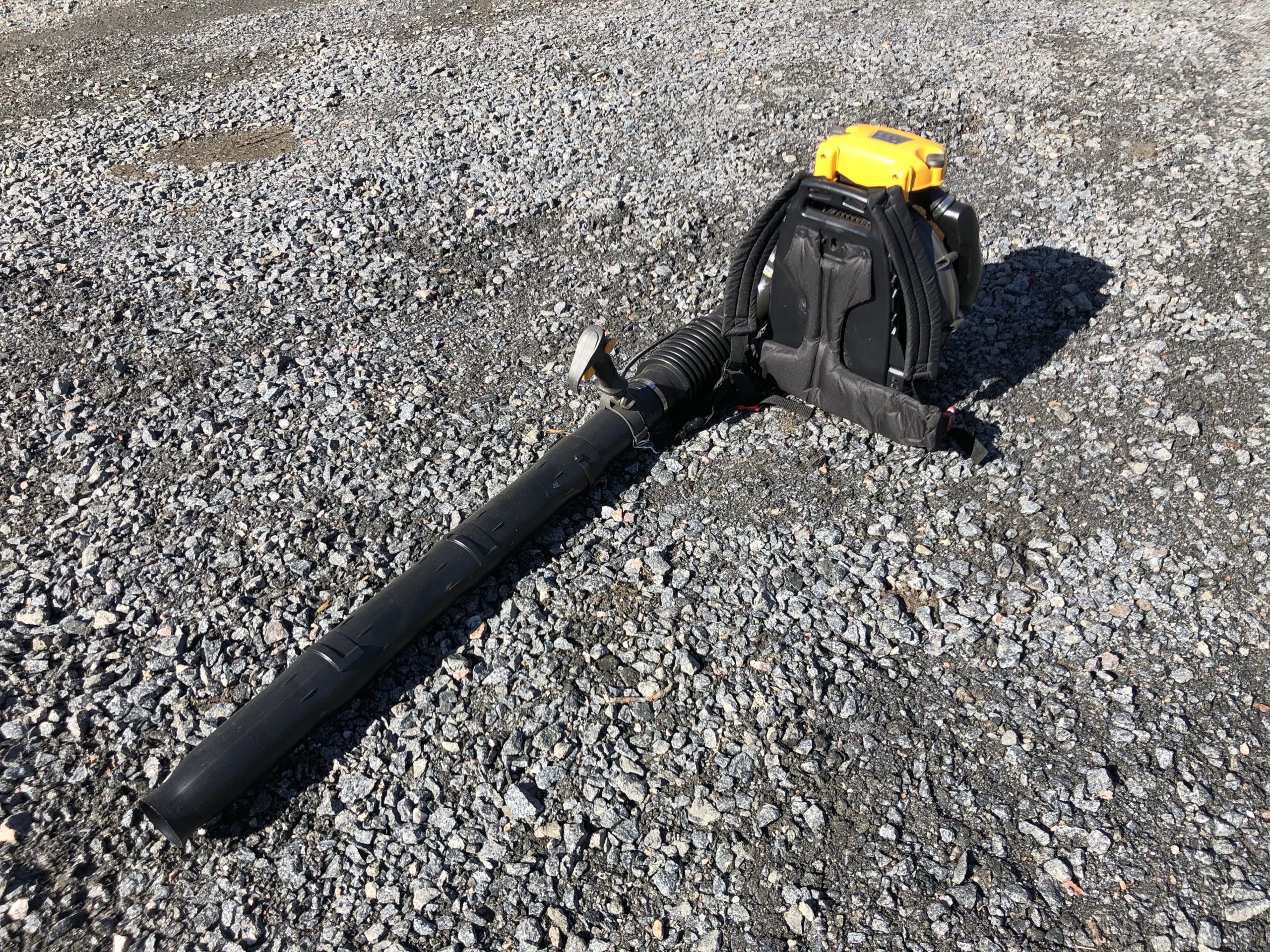 Lehtipuhaltimessa on 75,6 cc polttomoottori, säädettävä putki ja joystick-kädensija integroiduilla säätimillä. Hyvät valjaat.