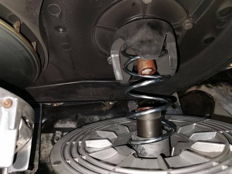 variator (clutch)spring. A loosen spring causes the clutch to engage too soon and the transmission gearing changes too early, which usually can cause the new variator belt to break. So, it is recommended that the (clutch)spring in the variator should be always replaced in pairs with a new belt.